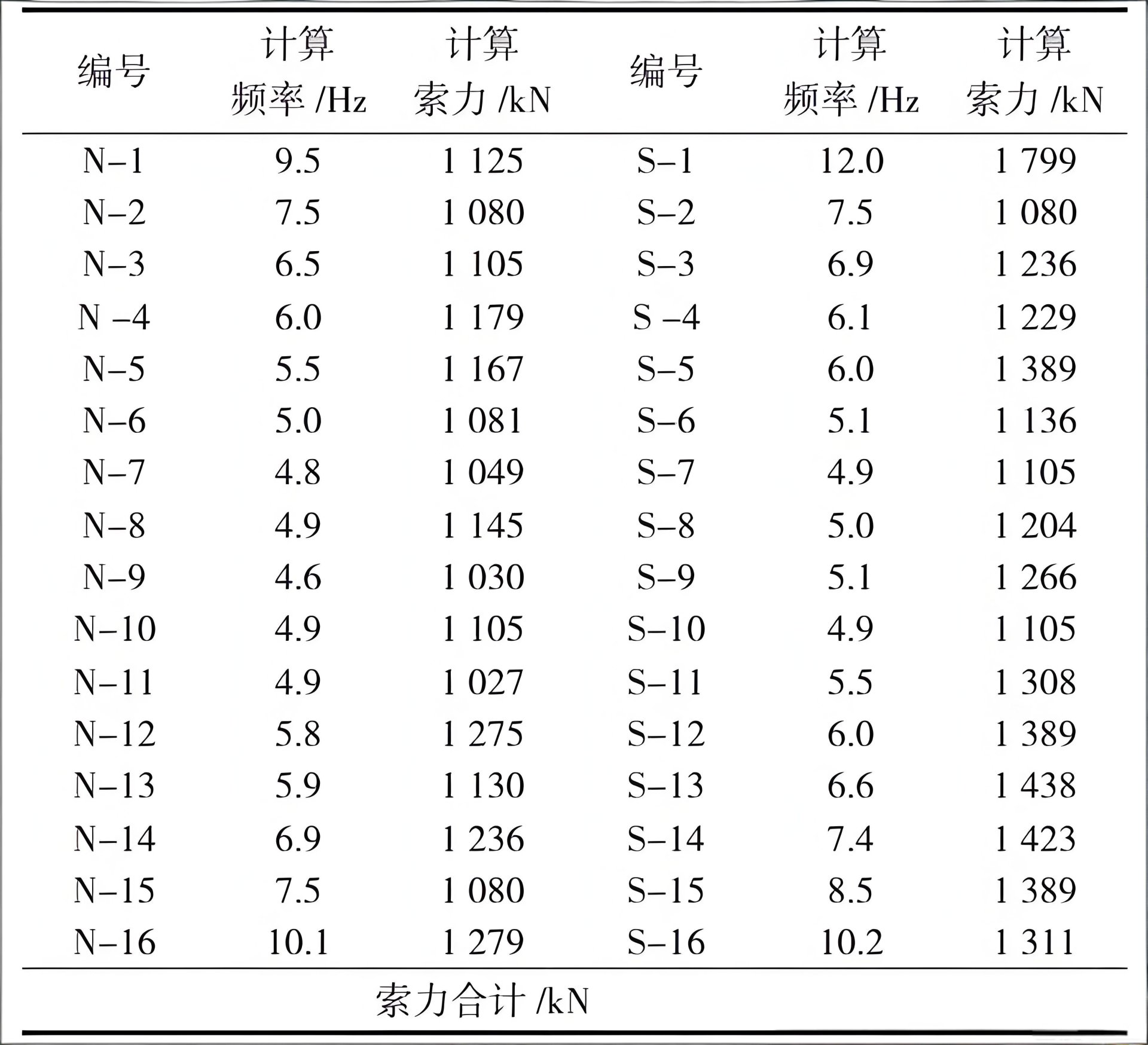 Table 3 Summary of measured frequencies and cable forces for each suspension rod![]()