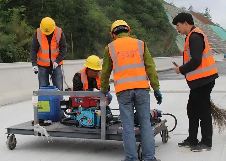 (1) The bridge deck should be free of floating slurry and debris,Water-repellent bonding layer+Before construction, it should be selected according to the actual situation of the bridge deckSandblasting+、Fine millin+ The cement concrete bridge deck is treated in a way to remove floating slurry and debris, and remove the excessive protrusion.