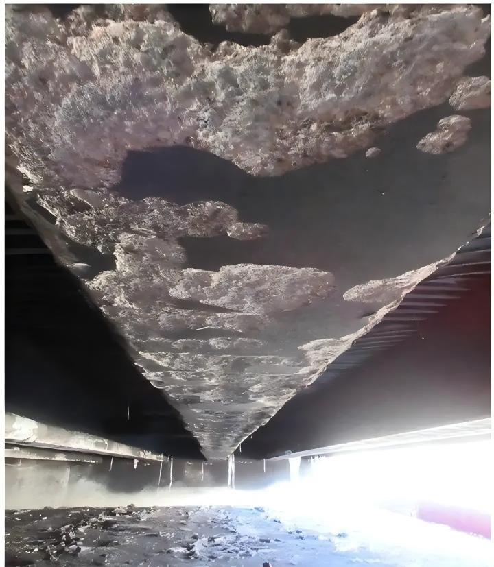 It mostly occurs on the side of the abutment, because the expansion joint is in disrepair, resulting in rainwater and other intrusion into the expansion joint, and the corrosion of the concrete by the water flow or caused by construction defects.