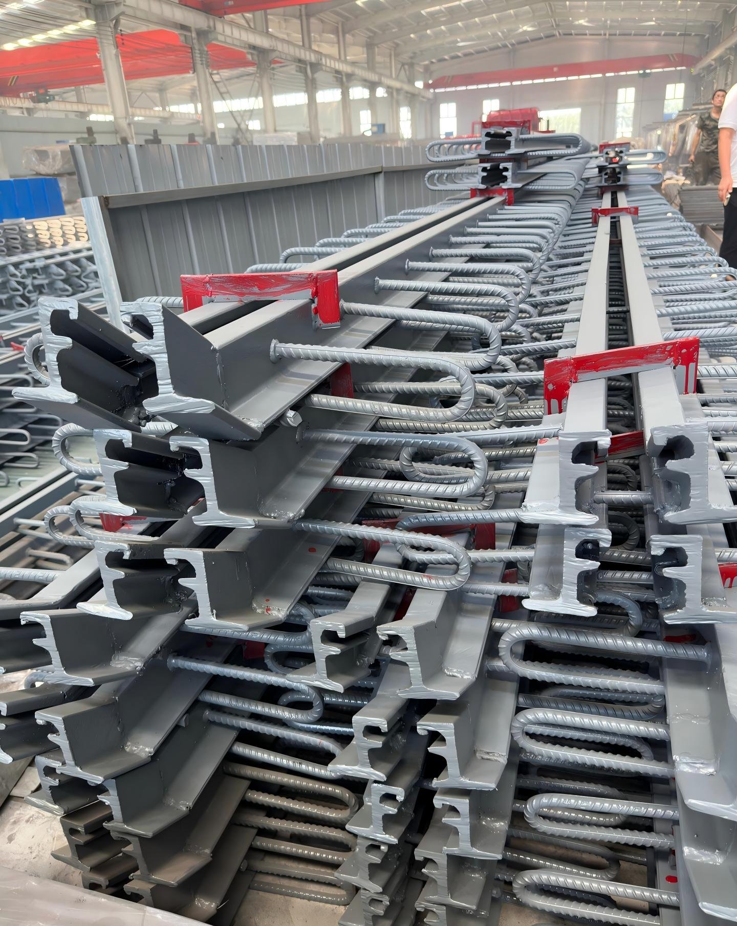 4. After the correct position, then thread and place the horizontal connection horizontal steel bars, so that the anchor steel bars on the expansion joint and the embedded steel bars are welded firmly on both sides at the same time.