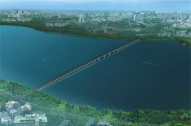 Puwan No. 14 Road Cross Sea Bridge: It starts from Abalone Village in Baotai Street, Jinzhou District in the north, crosses Beiyi Road and Binhai Road in sequence, and then enters the sea. On the south side, it lands at Beihai Village in Shihe Street, Jinzhou District, and crosses Binhai Road before landing. The total length is 2882 meters, the width is 30.5 meters, and the bridge deck is a two-way 6-lane road with 3 meters of pedestrian and non motorized mixed traffic on each side. The maximum navigation height is 10 meters.
