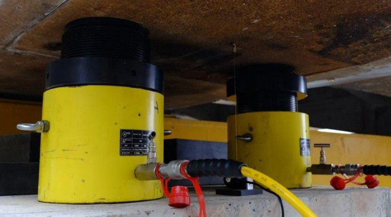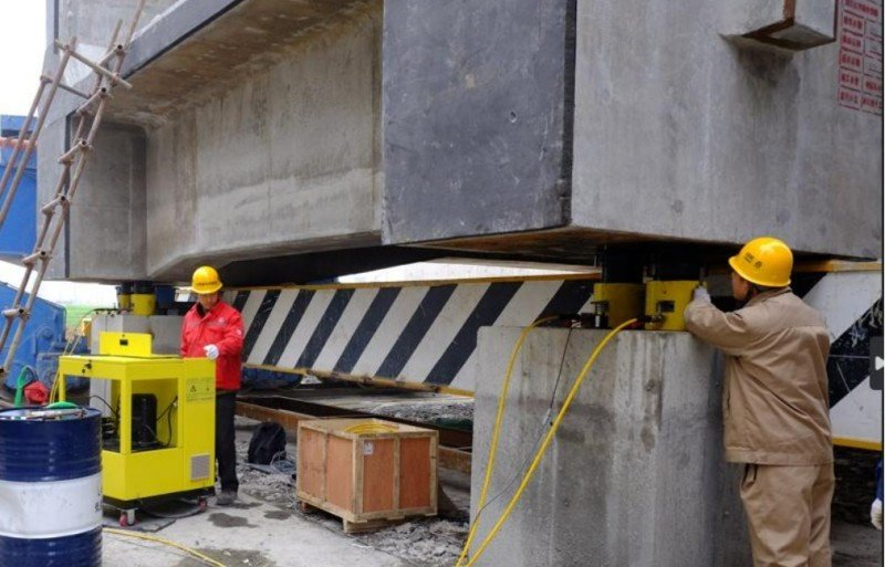 A commonly used solution in bridge maintenance and stabilization involves using ultra-thin hydraulic jacks or self-locking hydraulic jacks to lift the bridge superstructure, replace the bearing pads, and finally lower it onto the new bearing positions.