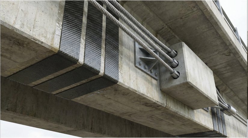 Carbon Fibre Reinforced Polymer (CFRP) has transformed bridge strengthening practice over the past three decades. CFRP laminates, fabrics, and rods offer tensile strengths of 2,000–3,500 MPa — five to eight times that of structural steel — combined with negligible weight and excellent corrosion resistance. They are bonded to the concrete surface using structural epoxy adhesives, adding flexural and shear capacity without adding significant dead load.
