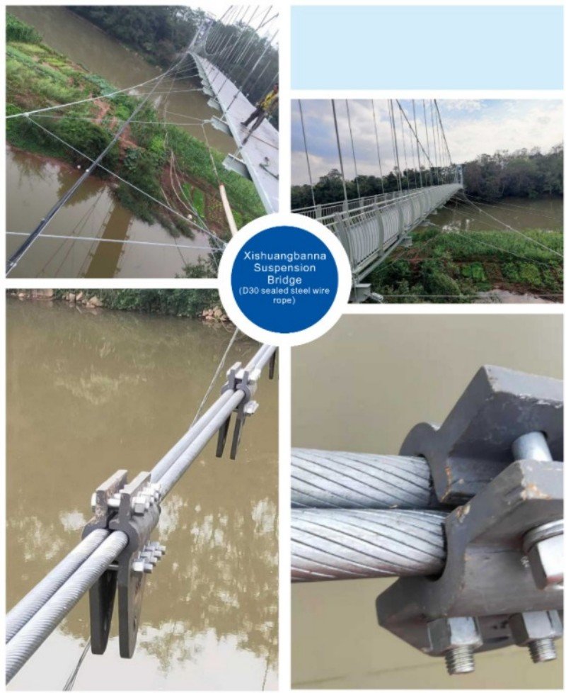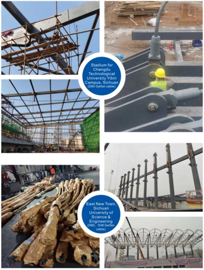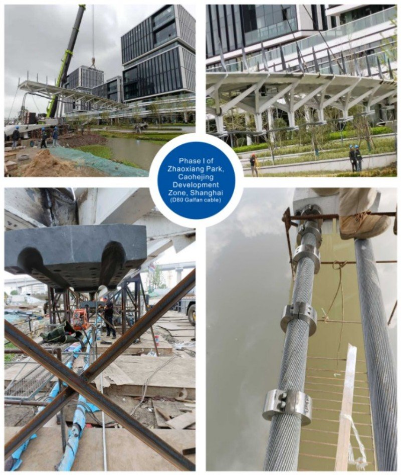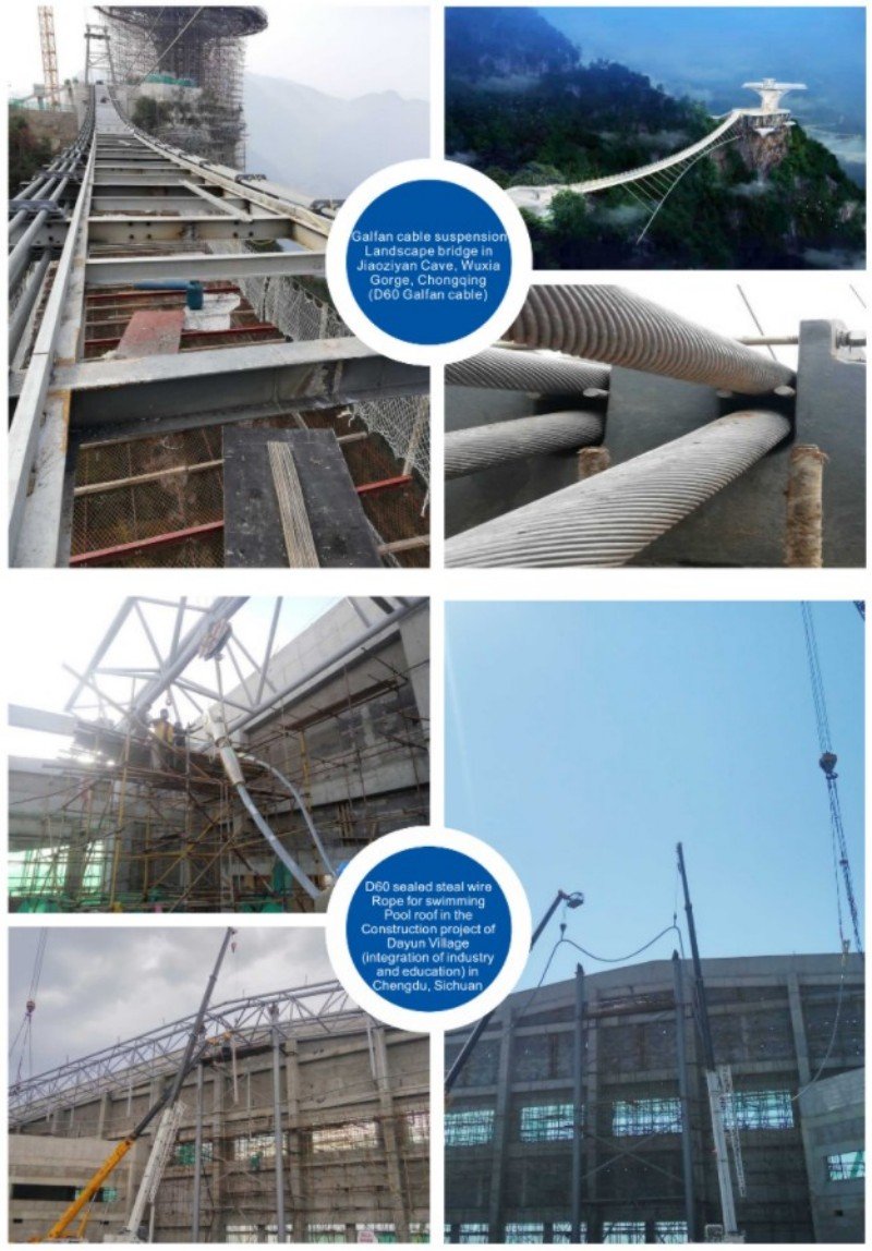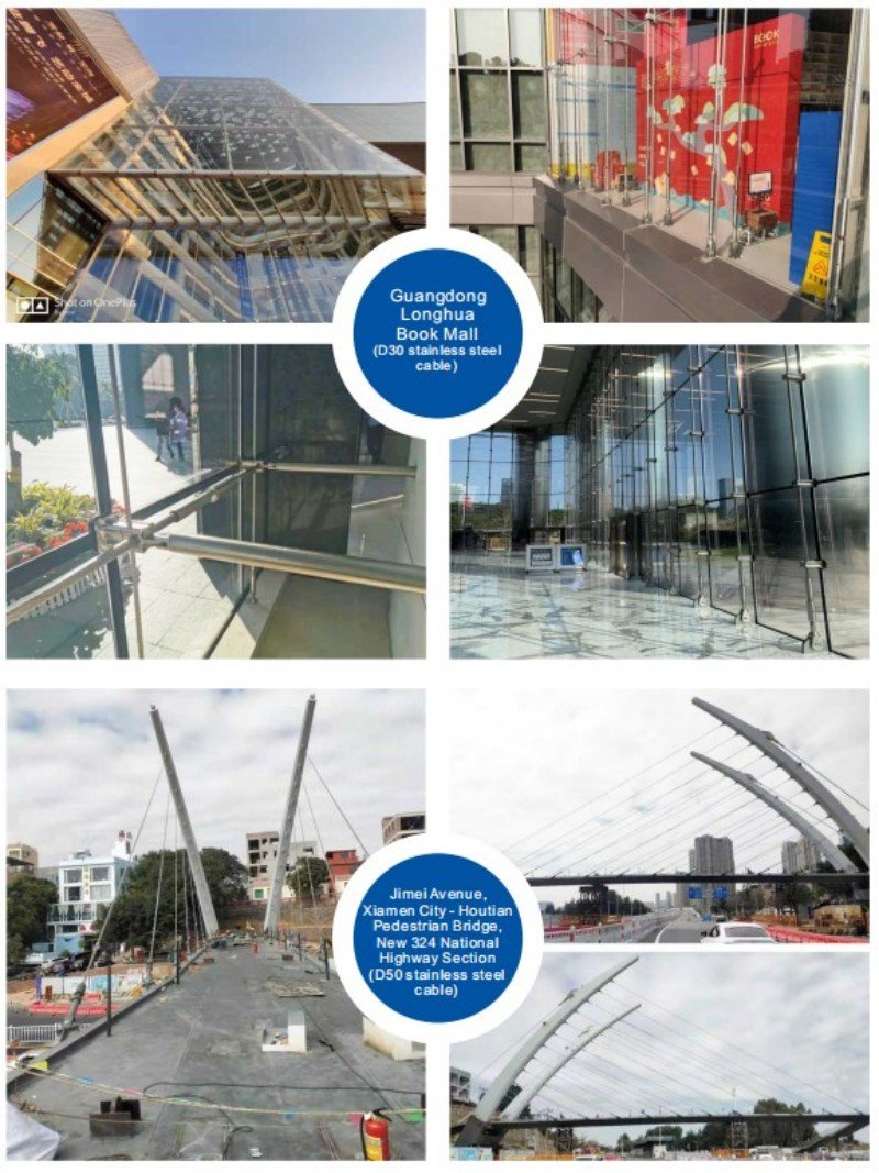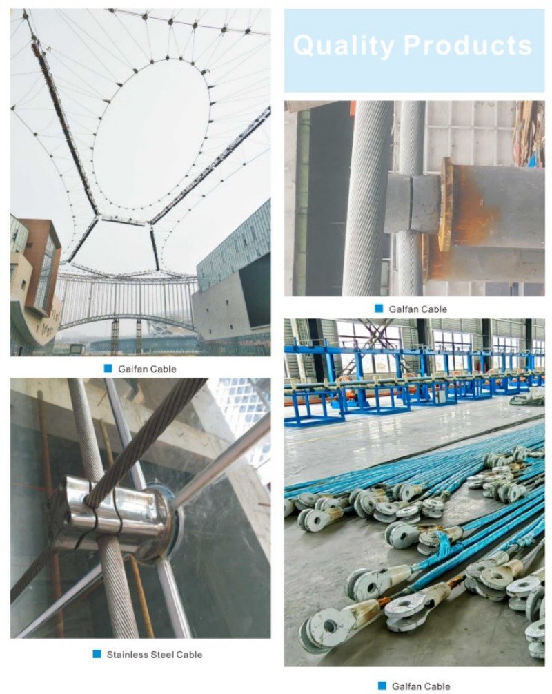 The cables for suspension bridges are primarily used in various cable structure systems, including cable nets, cable trusses, cable domes, and hybrid systems such as cable-stayed structures, string structures, cable-arch structures, and suspendomes that combine flexible cables with rigid components. They are also essential for glass curtain wall systems. These structural cables are valued for their aesthetic appeal, innovative anchorage design, and high anchoring efficiency. They contribute to creating lighter, more beautiful, and cost-effective building structures, making them particularly suitable for public venues like airports and stadiums that prioritize visual appeal.