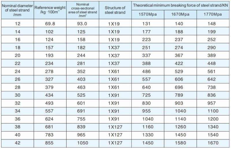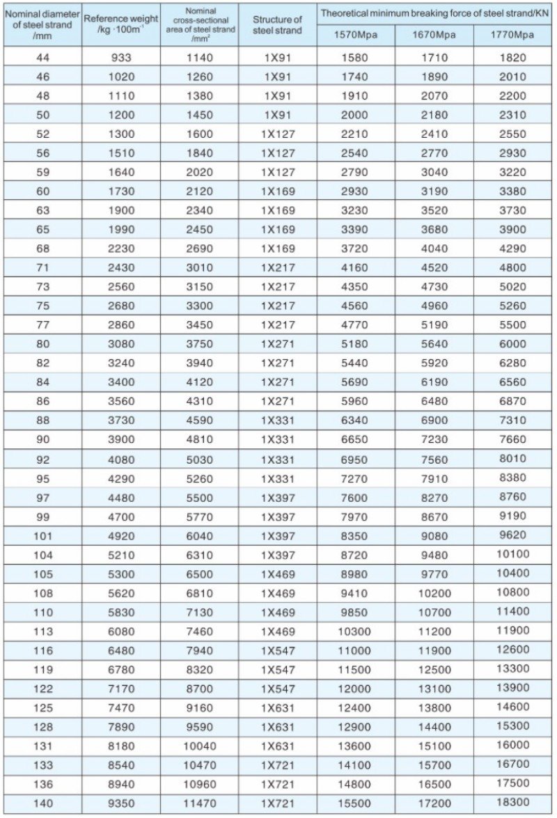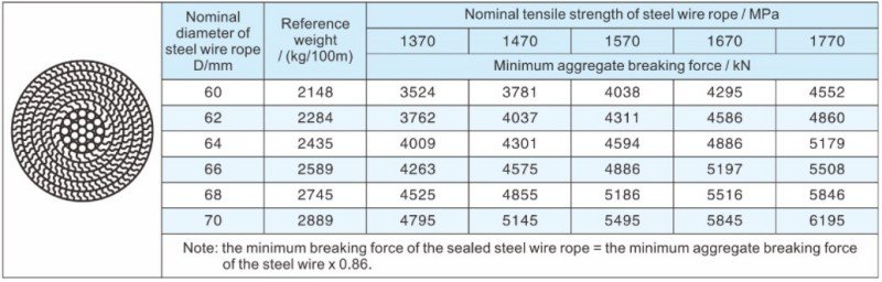 Notes: 1.The minimum breaking load of the cable is not less than 90% of the nominal breaking load of the cable body.
