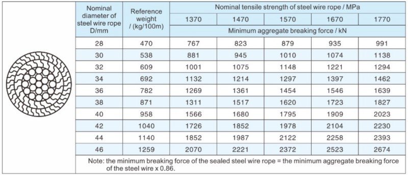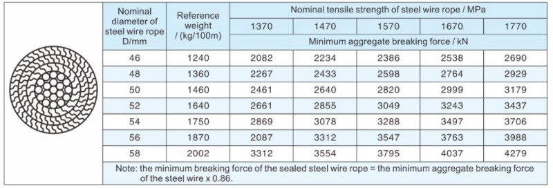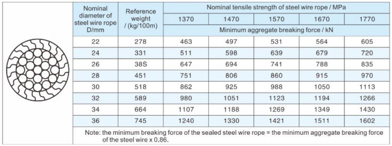 3. The elasticity modulus of the sealed steel wire rope is not less than 1.6X10Mpa.