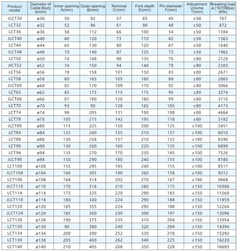 In terms of Galfan cable, sealed steel wire rope, stainless steel cable and general-purpose steel wire rope, if the strength is equivalent, anchorages of the same specifications can be selected.