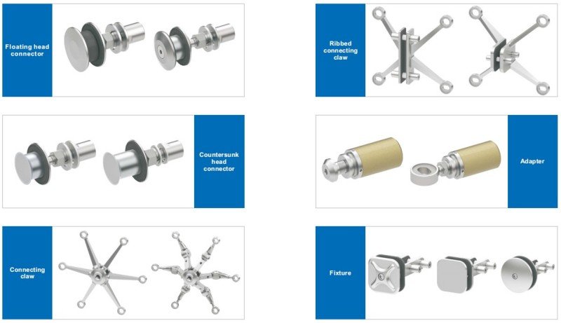 Glass Curtain Walls: Support systems for all-glass or point-supported glass curtain walls in large commercial complexes, office buildings, and airports.