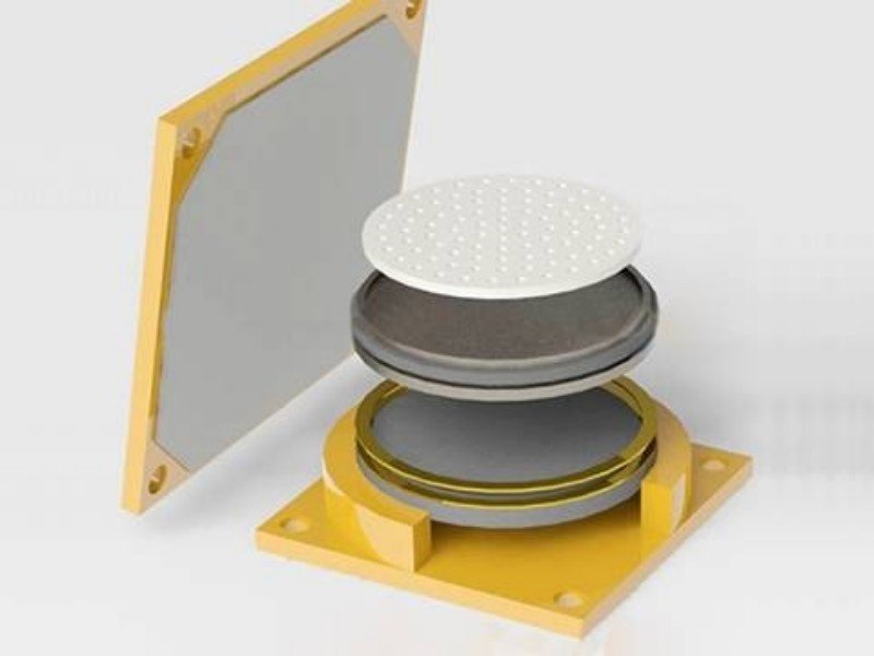 The pot itself is fabricated from standard steel plate to the required dimensions. A brass sealing ring is critical for preventing the pressurized elastomeric disk from extruding through the annular gap between the piston and the pot wall. The piston, housed within the pot, bears directly on the elastomeric disk.