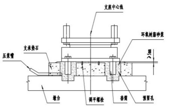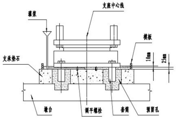 Formwork and Grouting: Install formwork around the bearing. Extend the grouting pipe to the center position beneath the bearing. Grout from the center outwards. Use a vibrator to compact the mortar and remove air bubbles, ensuring all voids are filled. Grout until the mortar is about 10mm above the bearing's lower steel plate (see Figure 4).