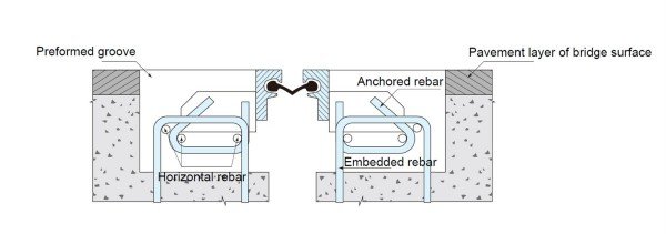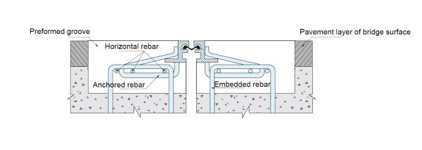 | Typical layout of strip seal expansion joint with C type edge beam | Typical layout of strip seal expansion joint with Z type edge beam |